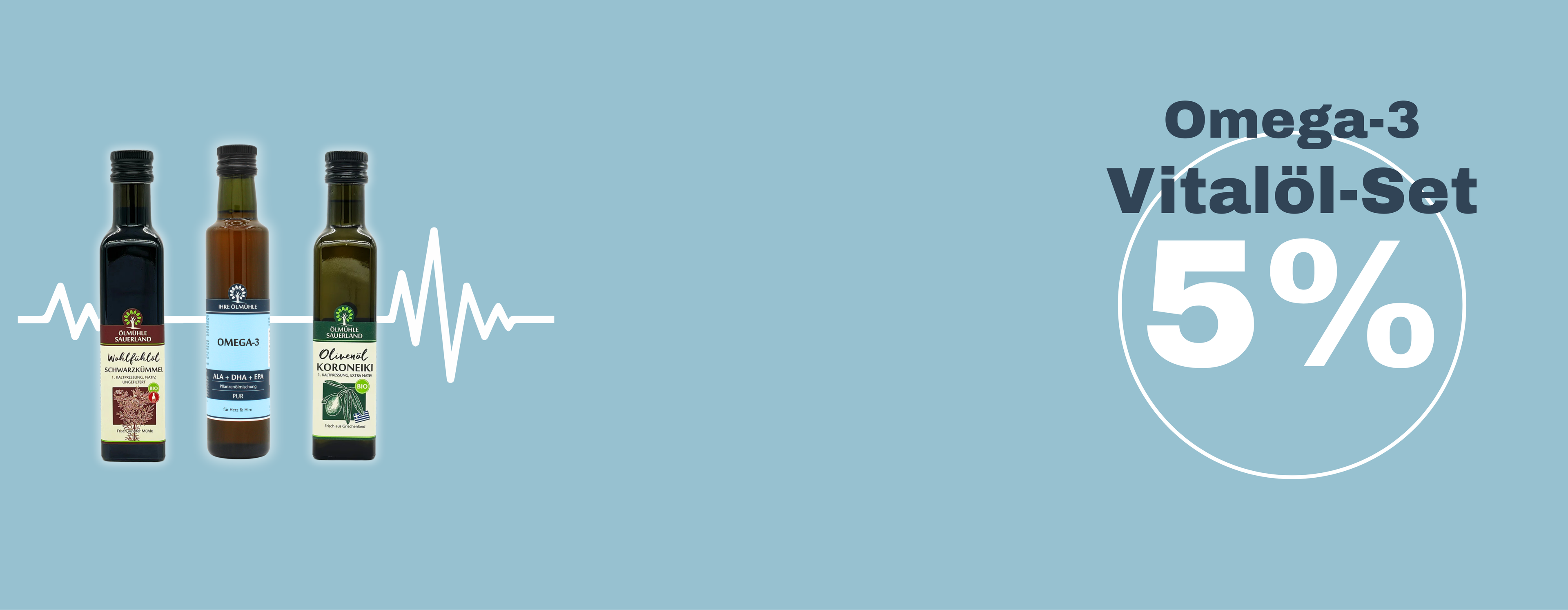 Mit unseren Vitalölen decken Sie Ihren täglichen Omega-3-Bedarf auf natürliche Weise. Angereichert mit hochwertigem Algenöl liefern sie wertvolle Omega-3-Fettsäuren wie DHA, AHA und EPA um eine bewusste, ausgewogene Ernährung zu unterstützen. Die pflanzliche Omega-3-Quelle macht unsere Vitalöle ideal für eine vegane und vegetarische Lebensweise. Gut verträglich, nachhaltig und einfach in den Alltag integrierbar – für mehr Vitalität und Wohlbefinden.
