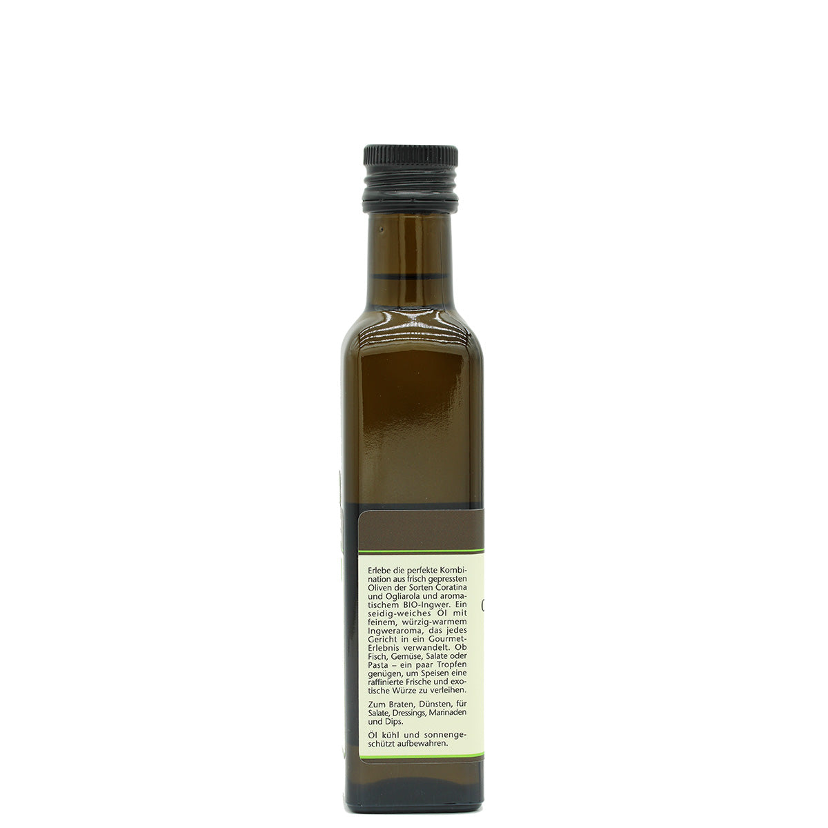 Dieses erlesene, natürlich aromatisierte Olivenöl vereint die Kraft der apulischen Sonne mit der belebenden Frische des Ingwers. Hergestellt aus feinsten Coratina- und Ogliarola-Oliven, die gemeinsam mit frischem Bio-Ingwer gepresst werden, entsteht ein außergewöhnliches Öl von unvergleichlicher Reinheit und Intensität.