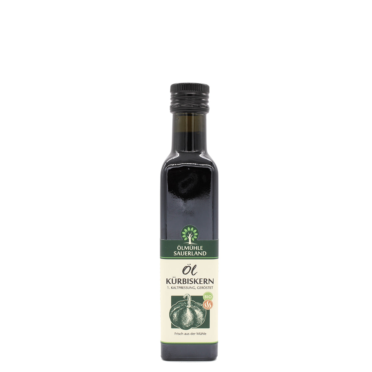 Die gewonnenen Kürbiskerne werden dann in unserer Ölmühle vorsichtig geröstet und im Kaltpressverfahren weiterverarbeitet. So entsteht ein herrlich intensiver Geschmack von Kürbiskernen der sich deutlich von unserer nativen Kürbiskernöl Variante abhebt.