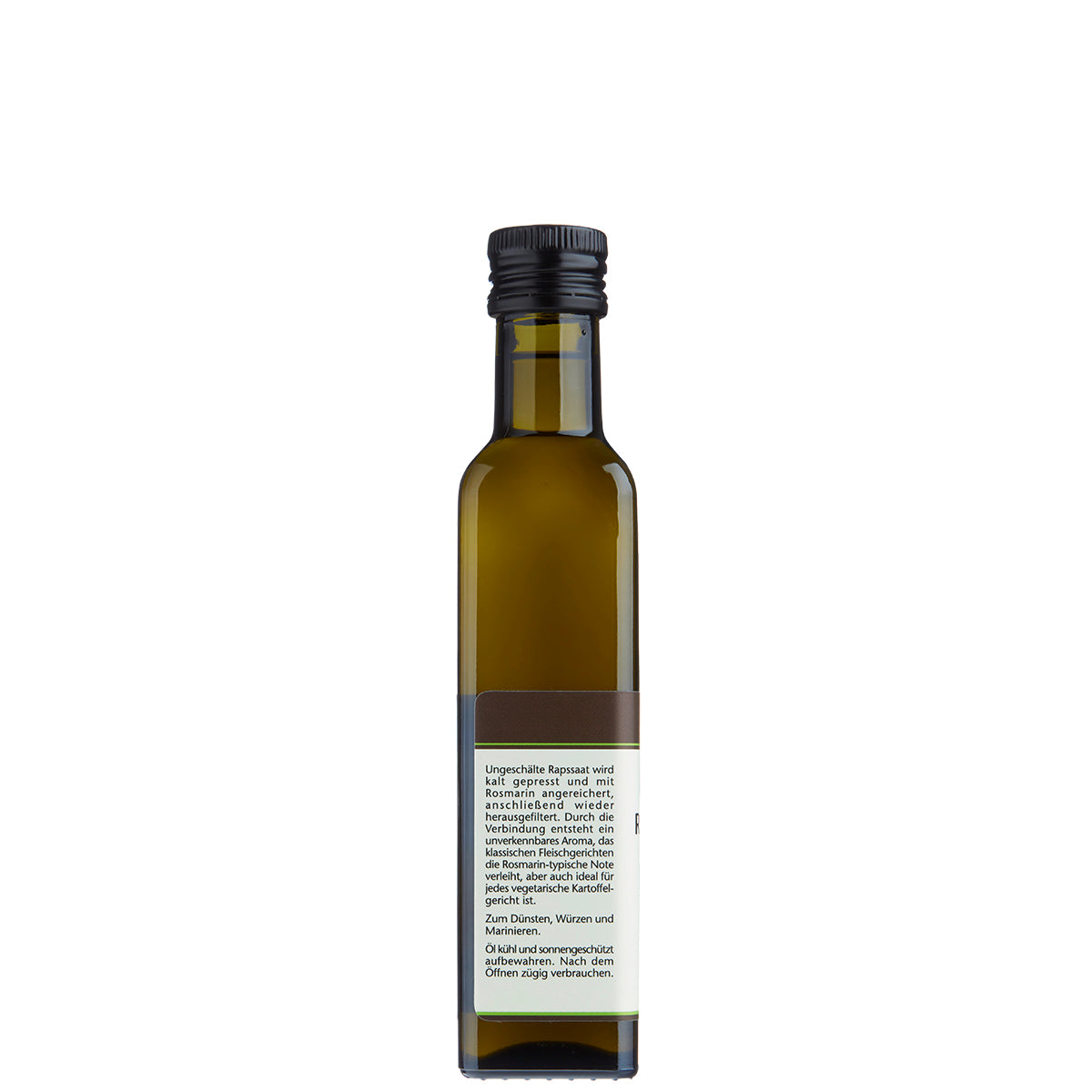 Tauchen Sie ein in die belebende Frische des mediterranen Aromas mit unserem Rosmarin Würzöl auf Rapsöl-Basis. Sorgfältig hergestellt aus biologisch angebautem Rosmarin und unserem hochwertigem kaltgepressten Rapsöl, bietet unser Würzöl eine harmonische Fusion von Geschmack und Qualität. Durch die Verbindung entsteht der unverkennbare Geschmack nach frischem Rosmarin, das Ihren Fleisch- und Gemüsegerichten die typische Rosmarin-Note verleiht.